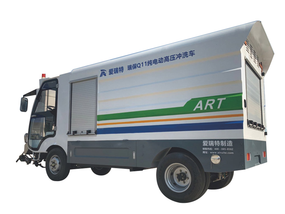 Ruibao Q11 pure electric high-pressure washing is mainly used for washing and maintenance of motorways, non motorways, sidewalks, back streets and alleys, municipal gardens, property communities and other roads. The lower left and right side flushing can be combined with the sweeper. The front high-pressure flushing and multi angle flushing device is used to clean the dirt at the road surface, road kerbs and traffic sign lines. The rear washing cart, washing site and high-pressure water gun can wash and maintain the sections where vehicles are inconvenient to stop.