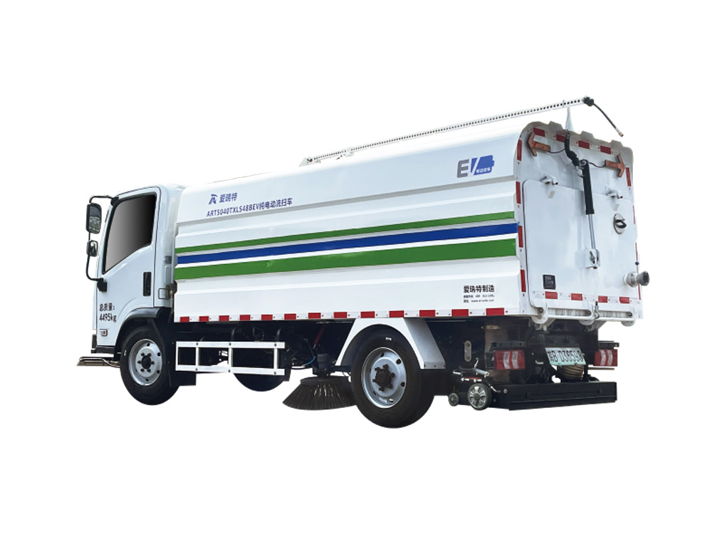 ART5041TXSS48BEV The pure electric washing and sweeping vehicle is mainly used for the general sweeping operation of main roads and other roads. It integrates the functions of sweeping and high-pressure washing. It can quickly clean the fallen leaves, stones, sand dust, white garbage, etc. and dump the garbage.