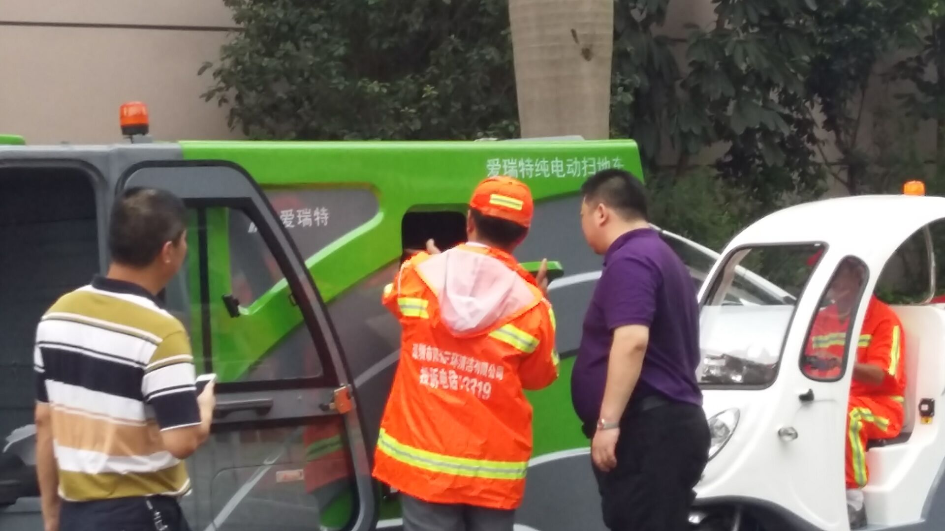 愛瑞特及龍華辦事處工作人員接到通知后,準備了一場特別的歡迎儀式。到達調研現場,迎面看到的是“愛瑞特儀仗隊”整齊劃一地停在馬路邊,等待領導的視察檢閱,成為觀湖街道上一道特別的風景線。龍華新區辦事處工作人員向相關領導系統詳細地匯報了環衛項目的進展和后續規劃,并讓環衛工作人員現場演示清掃過程。
