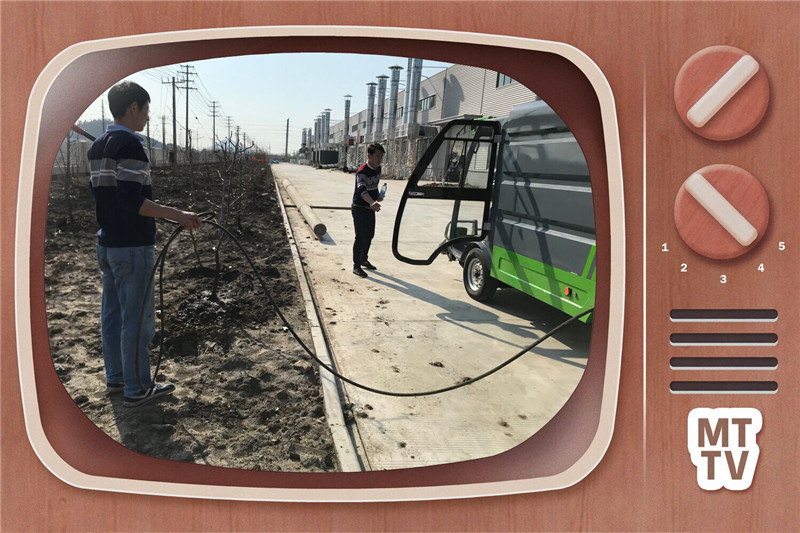 植樹活動(dòng)現(xiàn)場一派熱火朝天的景象,有的揮鍬、有的扶樹、有的培土、有的澆水,個(gè)個(gè)干勁十足。連公司的高壓沖洗車Q8也不甘示弱,沖到一線來澆水。
