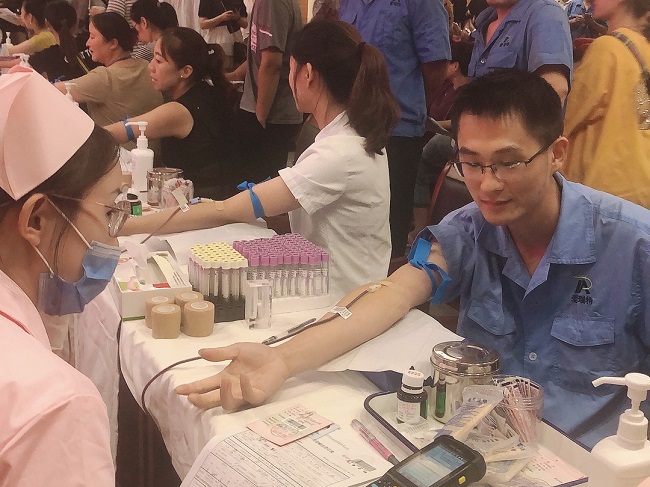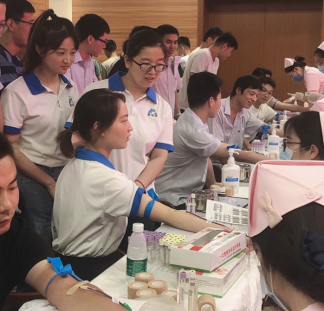在獻血大廳里,前來獻血的愛瑞特員工們排隊等候著采血結果,等待獻血,大家有說有笑。他們每個人的臉上洋溢著笑容,用實際行動支持義務獻血,為群眾的生命健康奉獻自己的愛心。